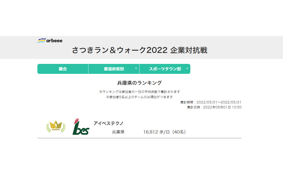5月の一ヶ月間の歩数や走行距離をアプリ上で競う企業対抗型のオンラインイベントです。